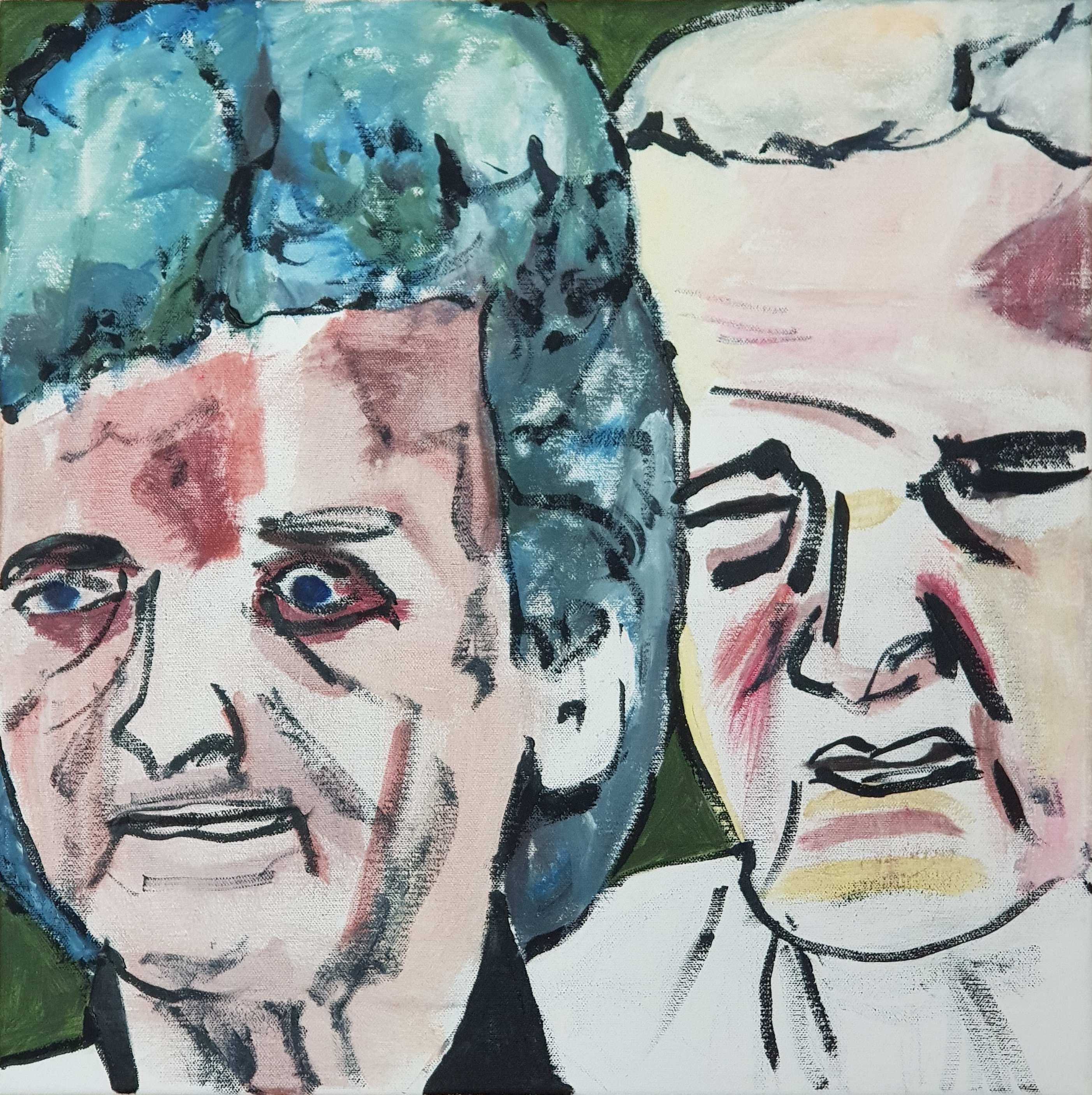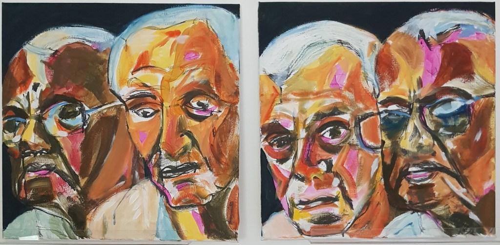 I began composing the next painting using two unconnected men who seemed to be of similar ages and couldn’t decide which of two compositions to use, so ended up painting a diptych of the two.