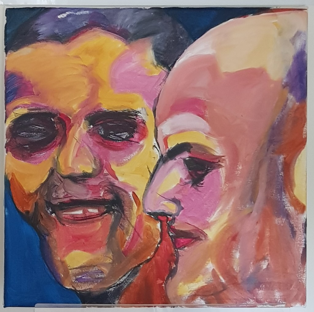 I painted the two pictures at the same time, but let the same faces in each develop independently, sparking off the other face in the same picture, and building on the differences in the loose inking of the underlying sketches. It amazed me how different they turned out with each face having a different ‘feel’.
